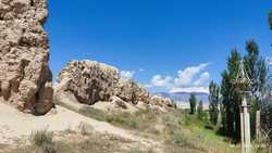 Теперь мы двигались в сторону Бишкека, по пути заехали в село Кара-Суу и посетили музей Кошой-Коргон с экспозицией археологических находок одноименного городища, руины которого находятся рядом. Кошой-Коргон – исторический памятник IX века, служивший крепостью с глинобитными стенами для тюркских правителей.