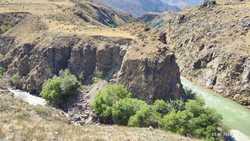 Перед Боомским ущельем свернули в ущелье Чон-Кемин, где с крутого обрыва полюбовались на слияние двух рек, Чу и Чон-Кемин. Чу несёт воды полупрозрачные с зеленоватым оттенком, а Чон-Кемин очень мутная, серого цвета, как будто смешанная с бетоном, наверно где-то выше сошел сель. Это завораживающее зрелище, кажется, что время остановилось и только потоки бурных вод, таких разных, сливаются здесь в одно русло, постепенно смешиваясь, и где-то там уже и не видно разницы...