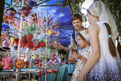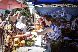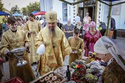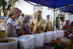После завершения поздней литургии начала работать ярмарка. Мероприятие продлится до 14 августа.