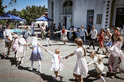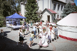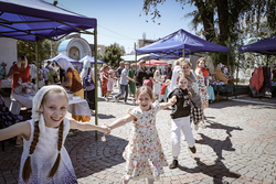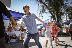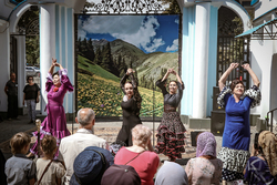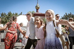 В воскресный день на территории соборной площади прошла культурная программа – выступление народных коллективов, хороводы. Проводились подвижные игры и конкурсы для детей и взрослых. Продавались товары народного творчества и сельхозпродукты. Желающие, угощались чаем, блинами с медом и вареньем.