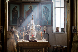 В проповеди после Причастия, владыка пересказал Евангелие дня, о том, как некий господин дал виноградник делателям. Они трудились, и пришло время собирания плодов. Господин того виноградника посылал своих слуг, чтобы получить плоды. Но делатели, одного прогнали, другого побили камнями. И господин прислал сына своего, в надежде, что сына его постыдятся. Но делатели убили и сына его, размышляя таким образом, что убив сына-наследника, они сами станут наследниками этого виноградника.