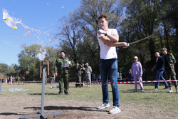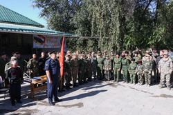 На мероприятии присутствовали: казачий полковник Александр Михайлович Зуев, атташе по вопросам обороны при Посольстве Российской Федерации, полковник Игорь Анатольевич Довбня, представители Российского Посольства и Русского Дома в Бишкеке, казаки Алматы, представители авиабазы ОДКБ «Кант».