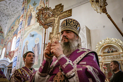 Обращаясь к прихожанам, в своем архипастырском слове епископ рассказал о событии воздвижения Креста Господня. Когда царица Елена обретя его на Святой Земле, повелела воздвигнуть Крест, именно для того, чтобы его увидели все. Пред Крестом Господним люди падали ниц, восклицая: Господи, помилуй!