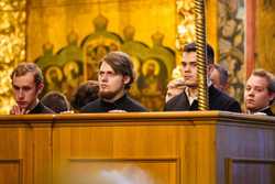 Богослужебные песнопения исполнил братский хор Троице-Сергиевой лавры под управлением иеромонаха Нестора (Волкова) и Сергея Сухарева.