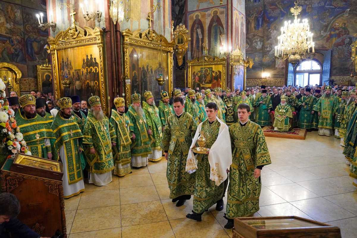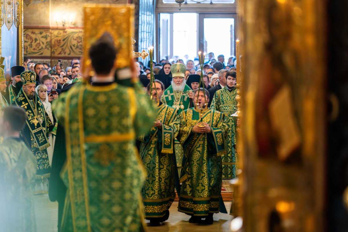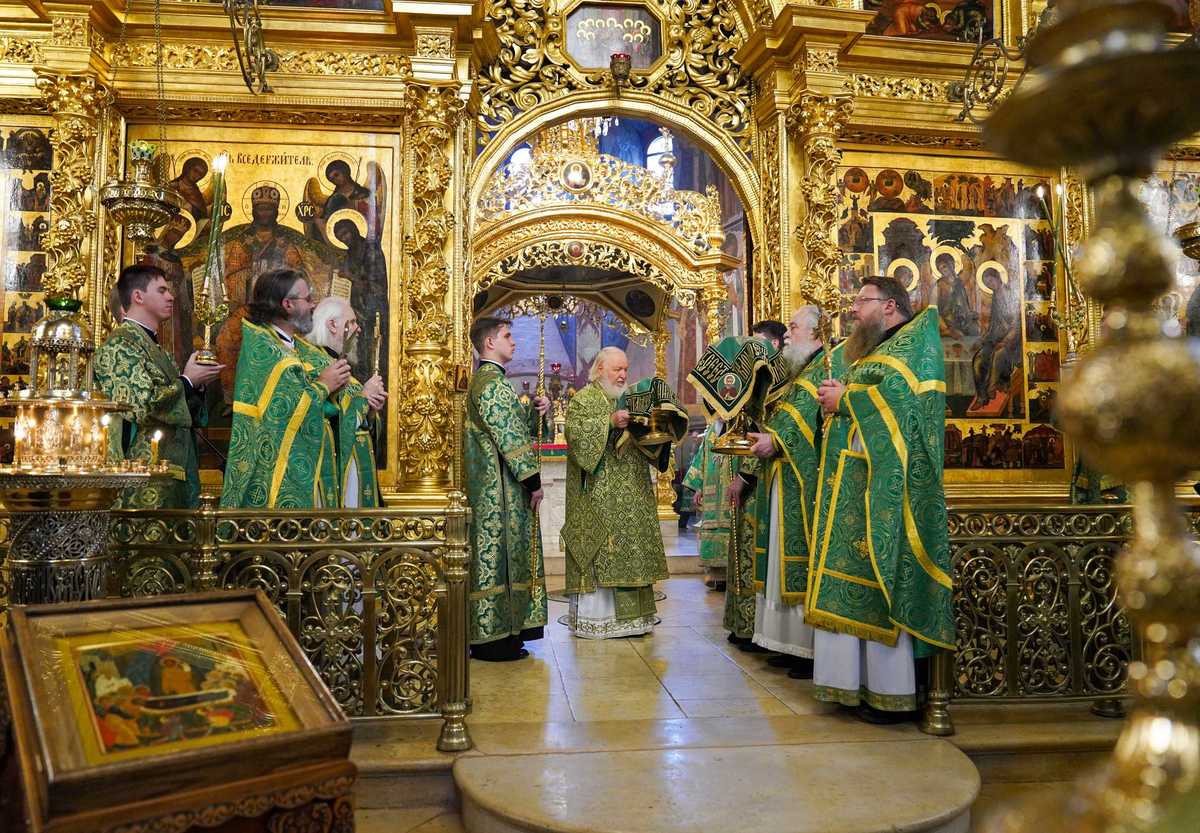 8 октября 2023 года, в Неделю 18-ю по Пятидесятнице, день преставления преподобного Сергия, игумена Радонежского, всея России чудотворца, Святейший Патриарх Московский и всея Руси Кирилл совершил Божественную литургию в Успенском соборе Свято-Троицкой Сергиевой лавры.