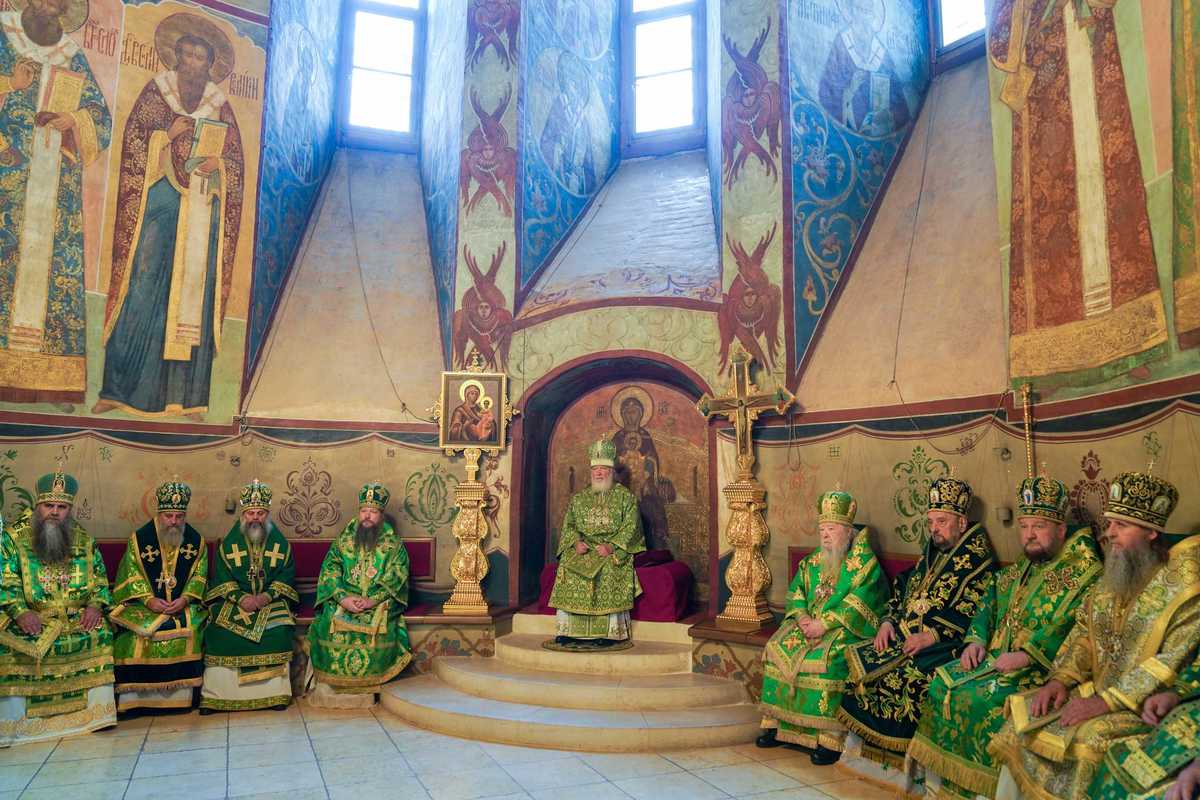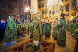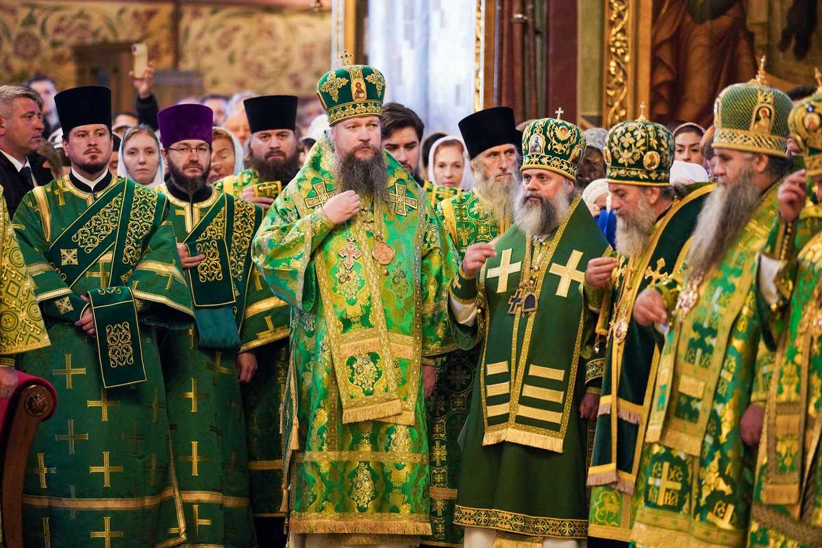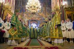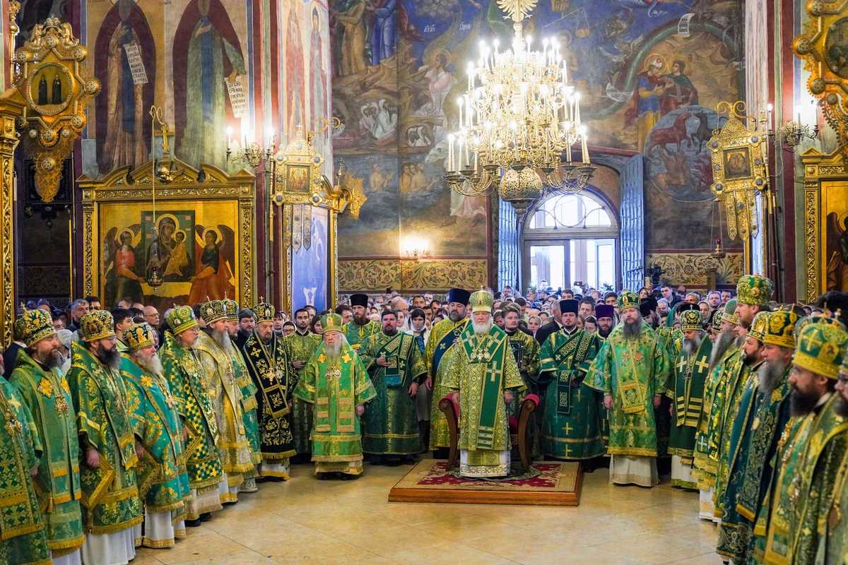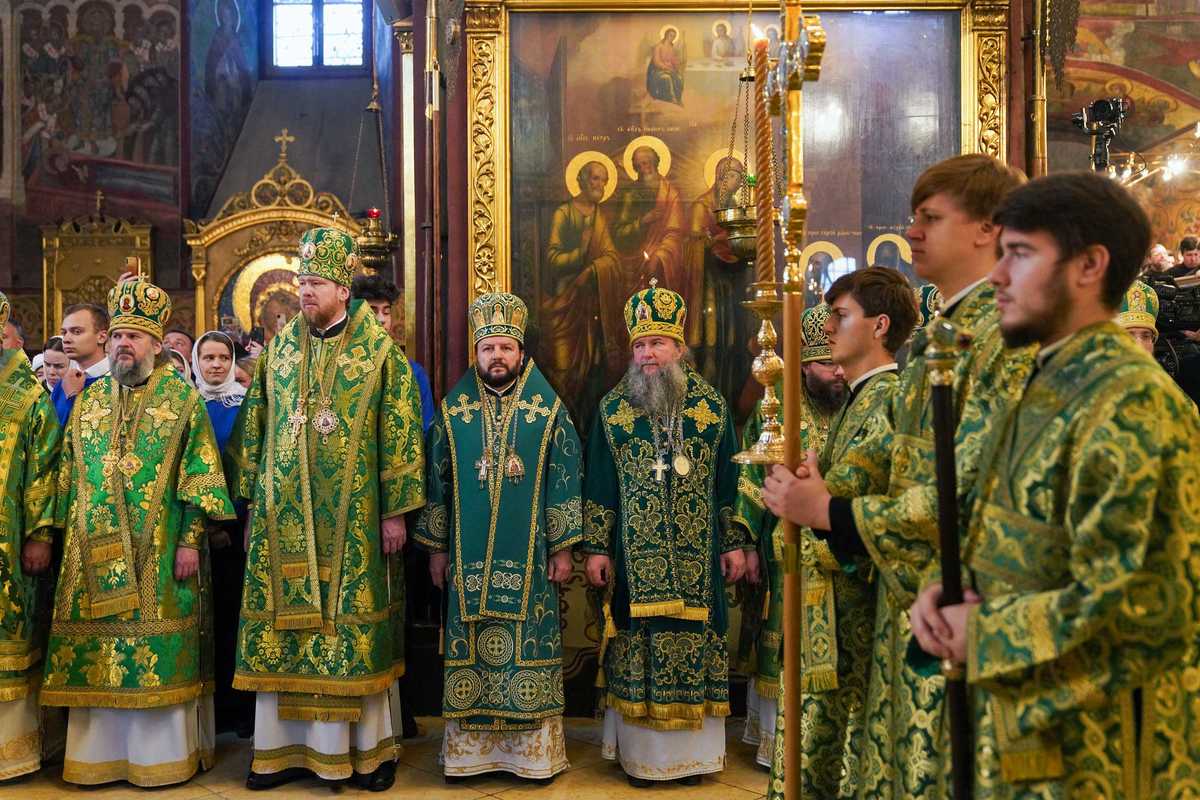 Его Святейшеству сослужили: митрополит Ювеналий (Поярков); митрополит Воскресенский Дионисий, управляющий делами Московской Патриархии; митрополит Иваново-Вознесенский и Вичугский Иосиф; митрополит Балтийский и Светлогорский Серафим; митрополит Курганский и Белозерский Даниил; митрополит Нижегородский и Арзамасский Георгий; митрополит Рязанский и Михайловский Марк; митрополит Тверской и Кашинский Амвросий; митрополит Ханты-Мансийский и Сургутский Павел; митрополит Владивостокский и Приморский Владимир; митрополит Смоленский и Дорогобужский Исидор; митрополит Клинский Леонид; митрополит Екатеринодарский и Кубанский Григорий; митрополит Екатеринбургский и Верхотурский Евгений, председатель Синодального отдела религиозного образования и катехизации; архиепископ Одинцовский и Красногорский Фома, руководитель Административного секретариата Московской Патриархии; архиепископ Егорьевский Матфей; архиепископ Владикавказский и Аланский Герасим; епископ Балашихинский и Орехово-Зуевский Николай; епископ Бронницкий Лука; епископ Норильский и Туруханский Агафангел; епископ Истринский Серафим, председатель Синодального отдела по дела молодежи; епископ Зеленоградский Савва, заместитель управляющего делами Московской Патриархии; епископ Озерский Порфирий; епископ Сергиево-Посадский и Димитровский Кирилл, ректор Московской духовной академии, наместник Троице-Сергиевой лавры; архимандрит Макарий (Веретенников), насельник Троице-Сергиевой лавры; протопресвитер Владимир Диваков, секретарь Патриарха Московского и всея Руси по г. Москве; архимандрит Алексий (Туриков), личный секретарь Святейшего Патриарха Кирилла; архимандрит Никандр (Пилишин), председатель Финансово-хозяйственного управления Московского Патриархата; архимандрит Иеремия (Соловьев), насельник Троице-Сергиевой лавры; протоиерей Дионисий Казанцев, секретарь Патриарха Московского и всея Руси по Московской области; игумен Дионисий (Шленов), наместник Андреевского ставропигиального мужского монастыря; священник Василий Лосев, руководитель Юридической службы Московской митрополии; насельники Троице-Сергиевой лавры в священном сане; сонм духовенства.