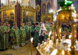 На сугубой ектении были вознесены особые прошения, Предстоятель Русской Православной Церкви прочитал молитву о Святой Руси.