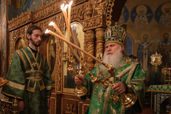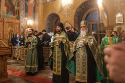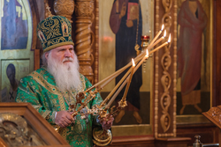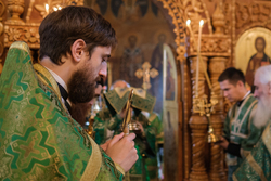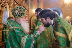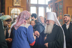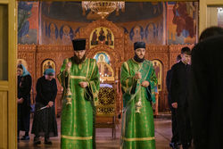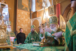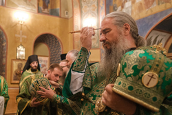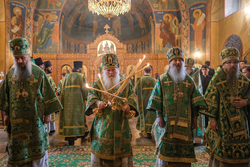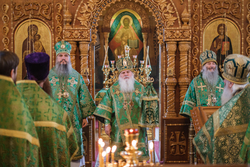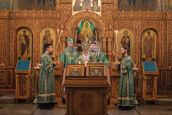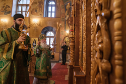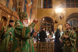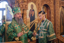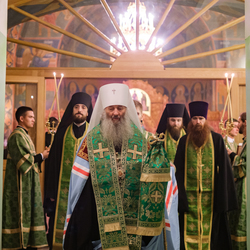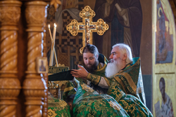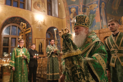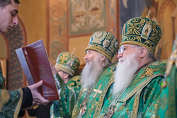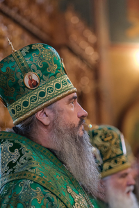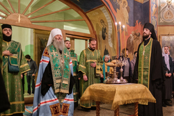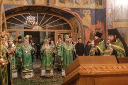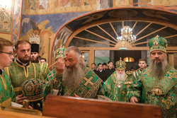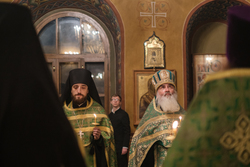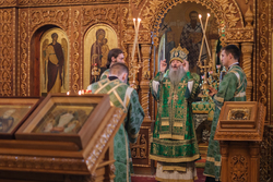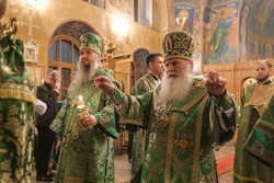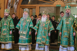 Его Высокопреосвященству сослужили: епископ Рыбинский и Романово-Борисоглебский Вениамин, епископ Бишкекский и Кыргызстанский Савватий, епископ Череповецкий и Белозерский Игнатий.