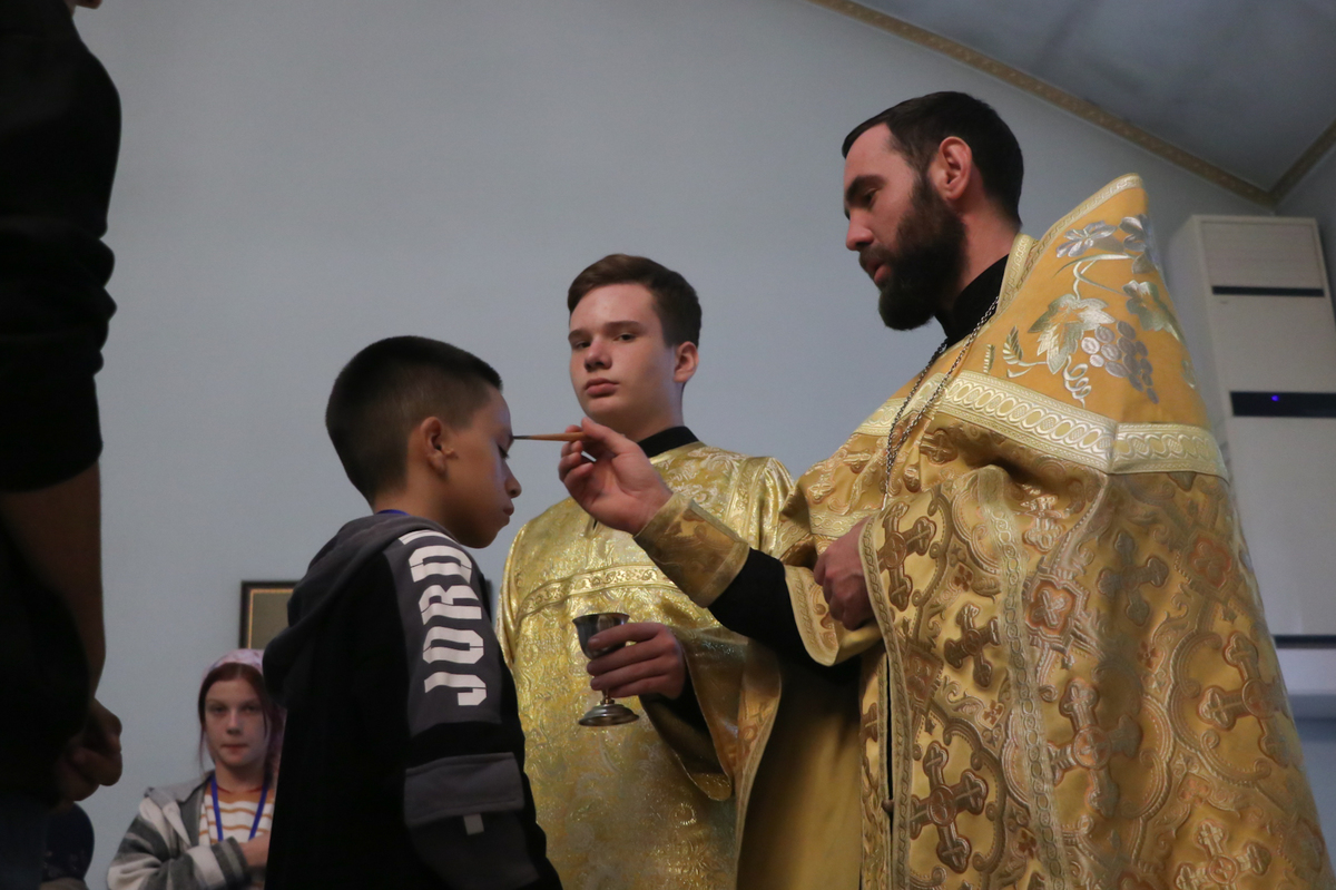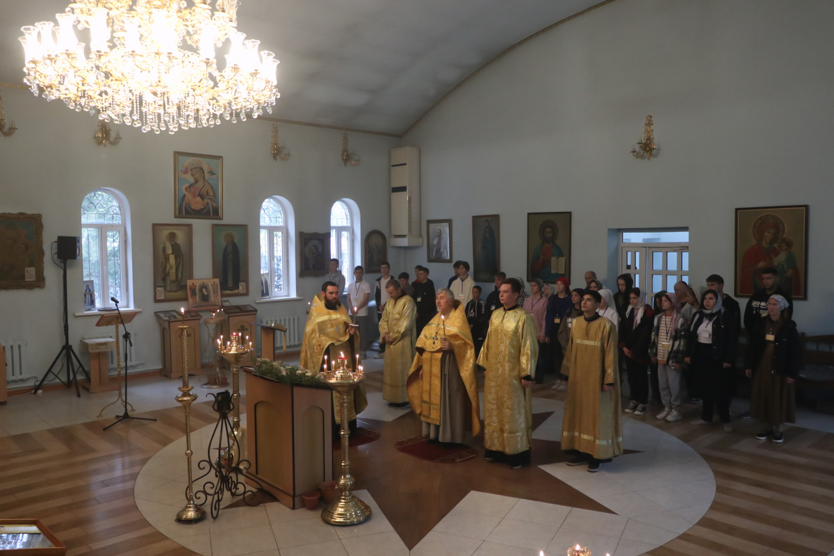 Утром, 8 октября, молодые люди молились за Божественной литургией, многие из них причастились Святых Христовых Таин. Богослужебные песнопения исполнялись как штатным клиросом храма Рождества Богородицы, так и сводным молодежным хором. В алтаре храма помогали ребята, несущие послушание алтарников на своих приходах.