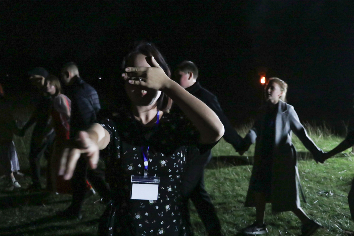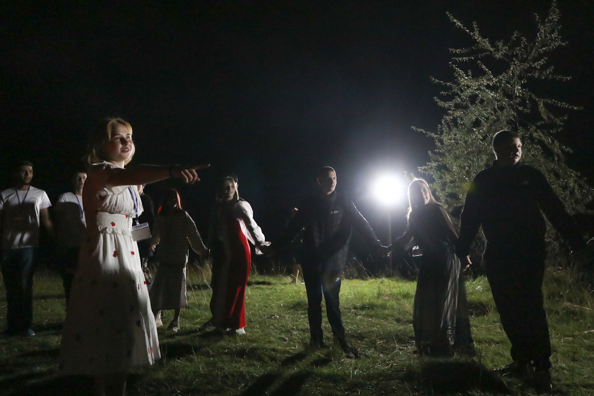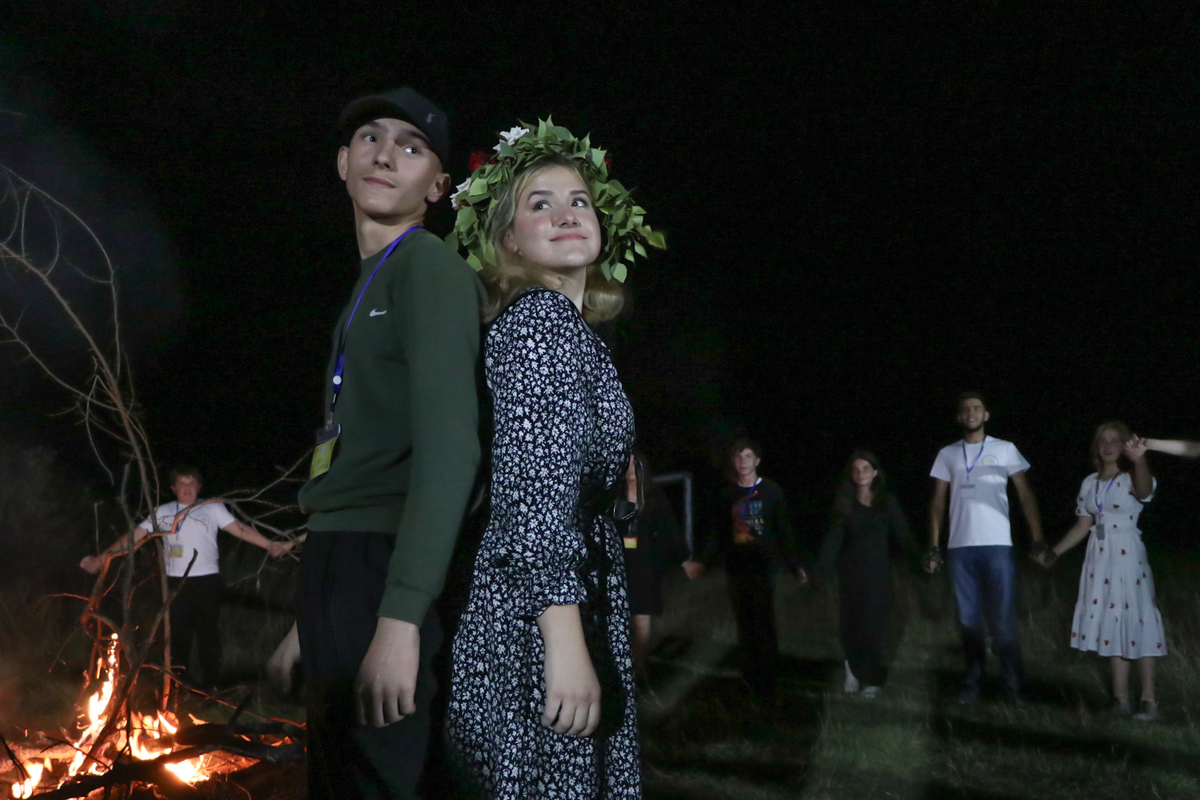 Церемония знакомства молодых людей между собой прошла в форме вождения хороводов. Затем состоялся конкурс песни под гитару, который плавно перетек в веселое пение караоке.
