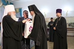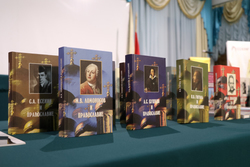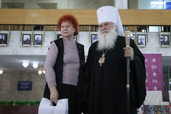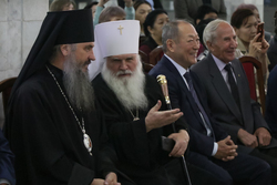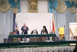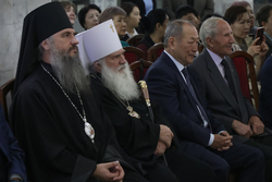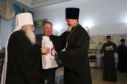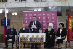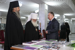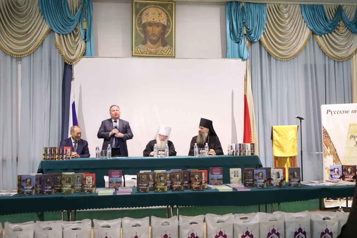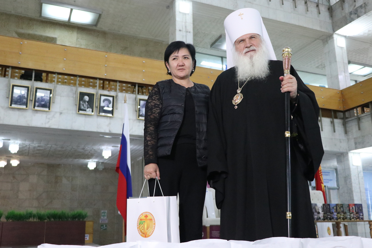По традиции Президент МФДЕН профессор В.А.Алексеев в рамках всех презентаций вручил полные двенадцатитомные комплекты книг серии «Русские писатели и православие» Национальной библиотеке Кыргызстана, а также приходам и школам Бишкекской епархии в благотворительном порядке.