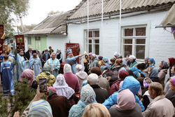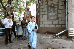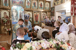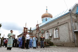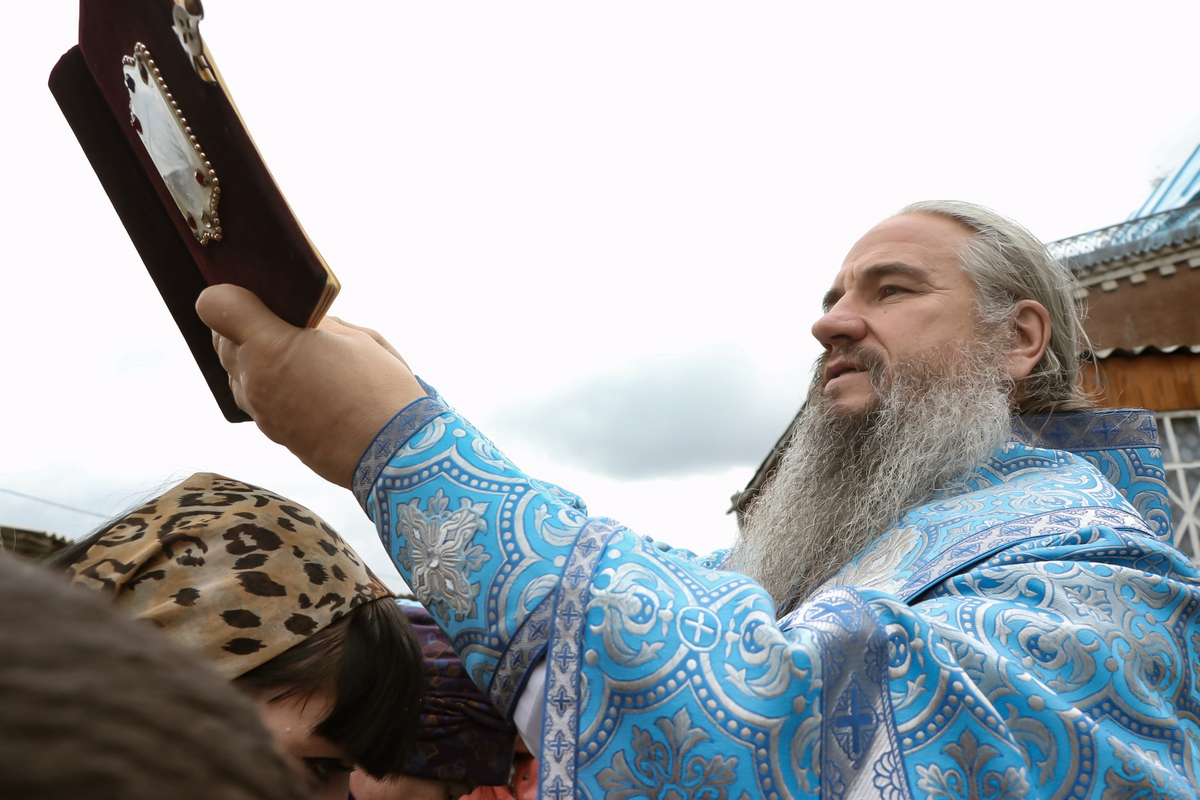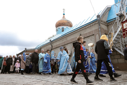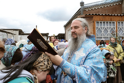 По завершении богослужения владыка возглавил крестный ход вокруг храма, а затем обратился к прихожанам с архиерейским словом.