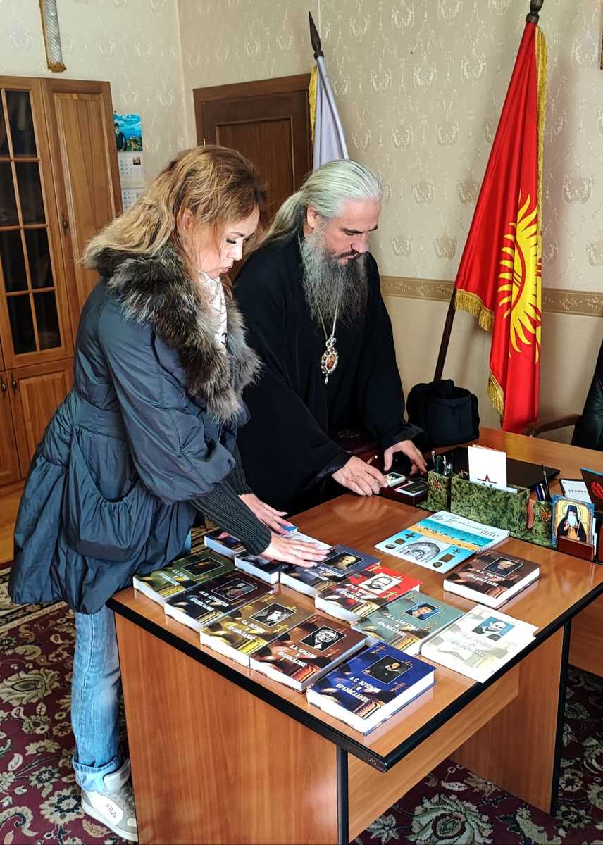 Епископ Савватий выразил желание принять участие в разрешении данного вопроса, а также предложил провести мероприятие, которое состоялось немногим ранее в Бишкеке в рамках года русского языка в странах СНГ. Напомним, что 13 октября сего года Международный Фонд духовного единства народов (МФДЕН) в благотворительном порядке передал пятидесяти библиотекам Кыргызстана и приходам Бишкекской епархии коллекцию книг - «Русские писатели и православие». В этой уникальной 12-томной коллекции представлены книги о творчестве Ф.М.Достоевского, Н.В.Гоголя, Ф.И.Тютчева, И.А.Крылова, А.С.Пушкина, А.А.Ахматовой, Н.М.Рубцова, М.Ю.Лермонтова, С.А.Есенина, В.М.Шукшина, М.А.Шолохова, М.В.Ломоносова.