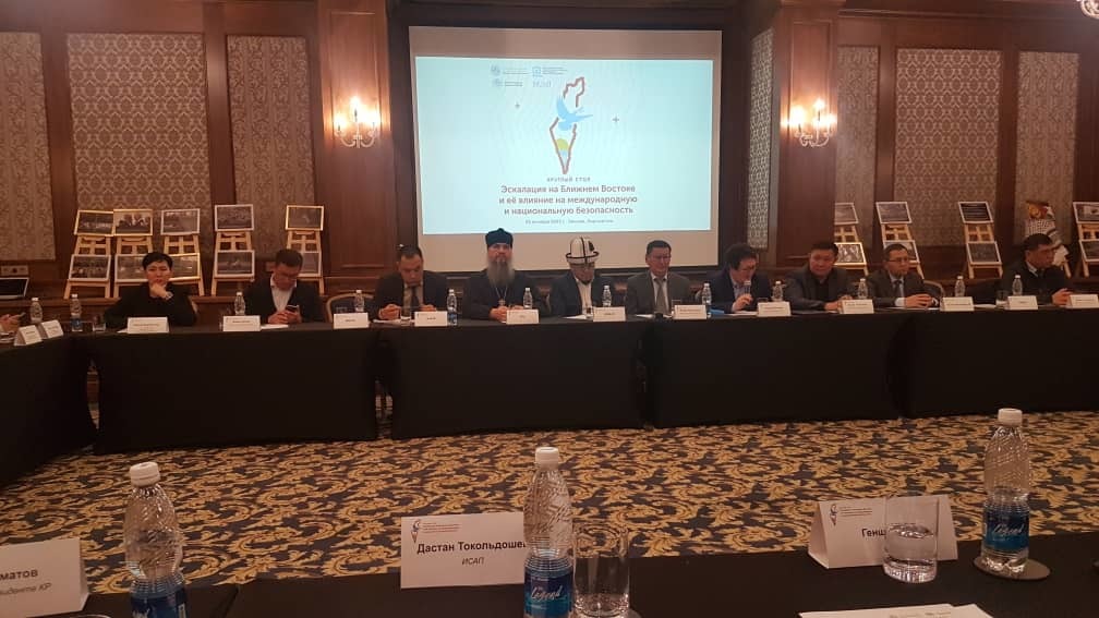 23 октября, в конференц-зале столичного отеля «Орион» состоялся круглый стол «Эскалация на Ближнем Востоке и влияние на международную и национальную безопасность». Организаторы мероприятия: независимый аналитический, исследовательский центр «Религия, право и политика» в партнерстве с НИСИ при президенте КР, ИСАП при КРСУ и Дипломатической Академией МИД КР провел круглый стол: