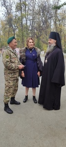 Пришедшие возложили цветы к памятнику и общей молитвой почтили память погибших воинов. Епископ Савватий обратился с приветственным словом к собравшимся.