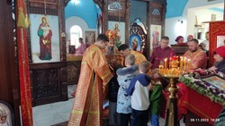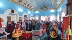 В недавно отстроенном расширенном храме собралось множество молящихся. На праздник приехали из соседних сел и приходов, и по тому, как люди радуются встрече друг с другом, становится понятно, что народ здесь дружный и доброжелательный.