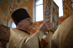 В Свято-Воскресенский кафедральный собор привезли икону Пресвятой Богородицы «Одигитрия», с частицей Покрова Пресвятой Богородицы. Икону передали Свято-Троицкому монастырю на Иссык-Куле.
