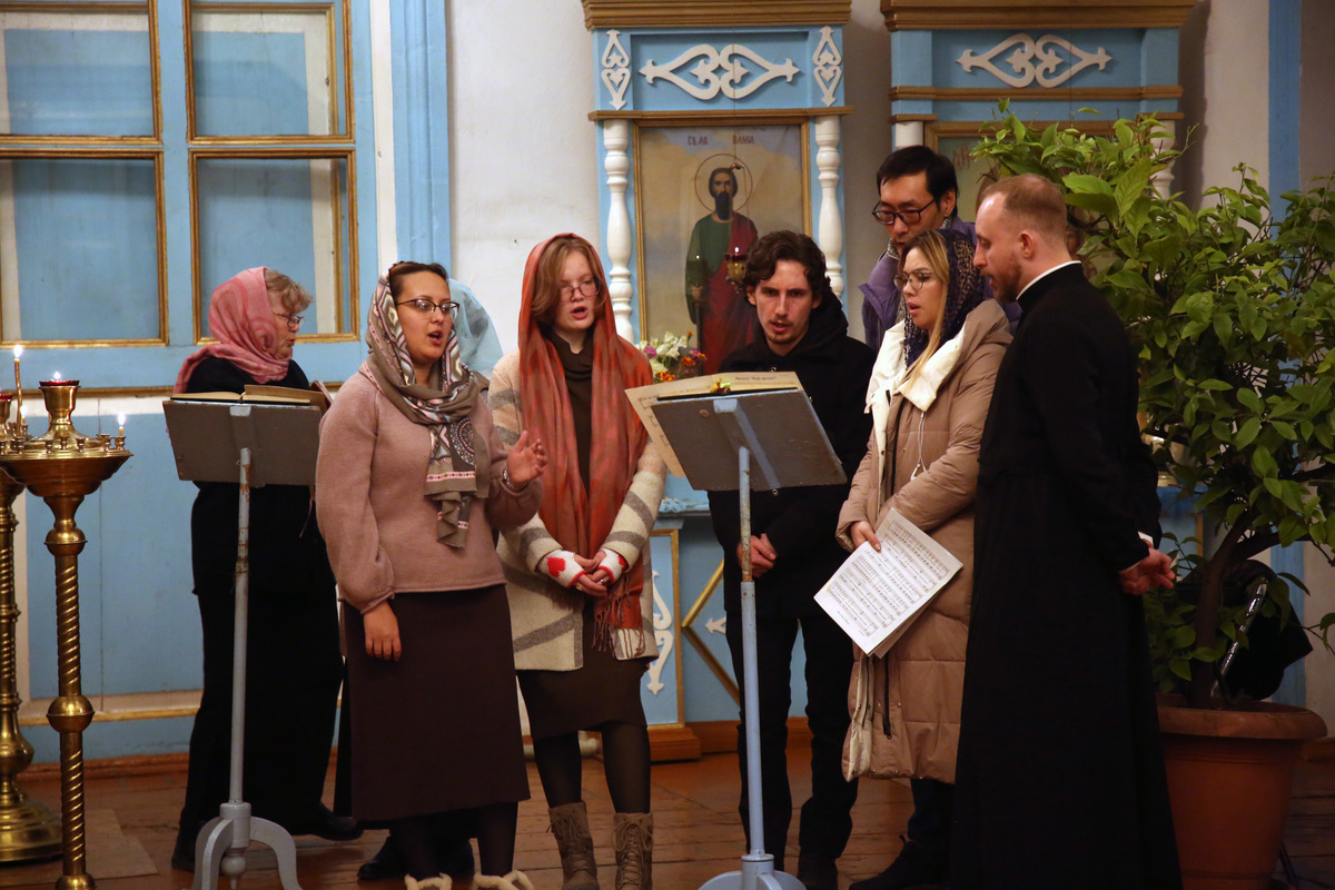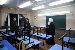 В Каракол, который знаменит старинным Свято-Троицким Собором, построенным в начале 20 века и пребыванием в нем чудотворной Тихвинской слезоточивой иконы Богородицы, делегация прибыла вечером. Митрополит Викентий совершил полиелейную службу, а затем гости осмотрели Троицкую школу, которая расположена прямо на территории собора.