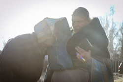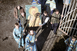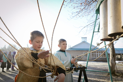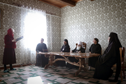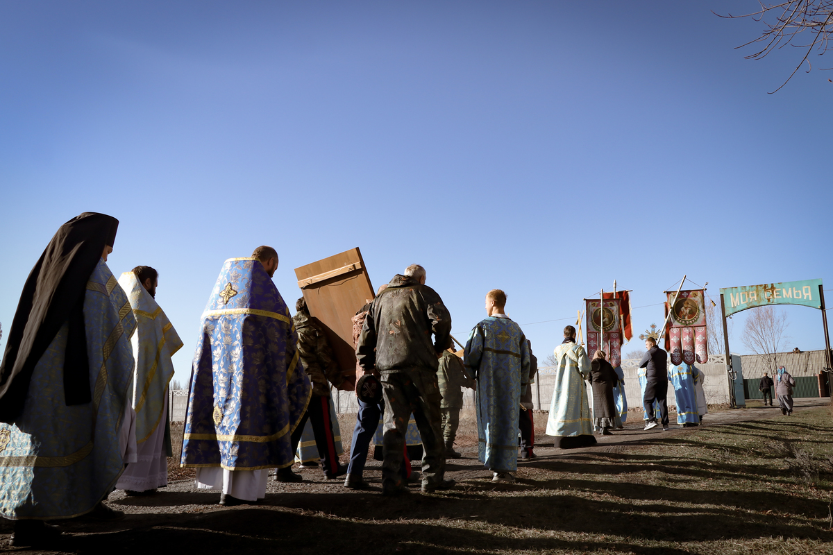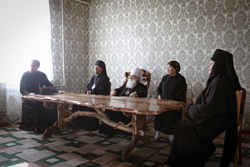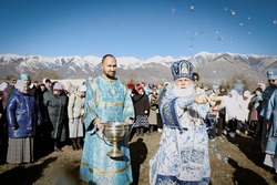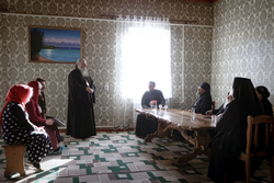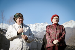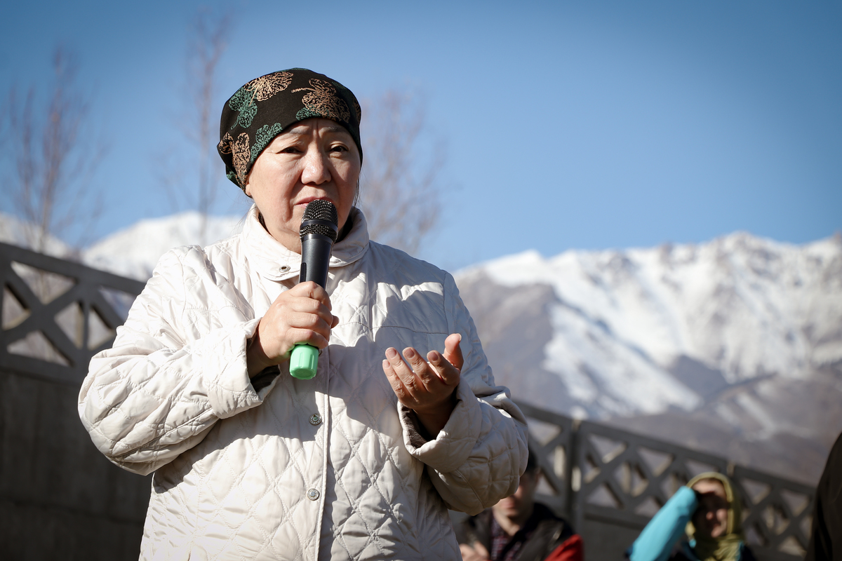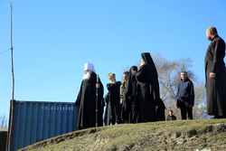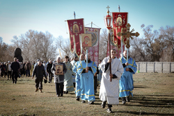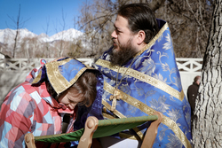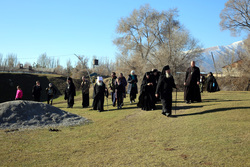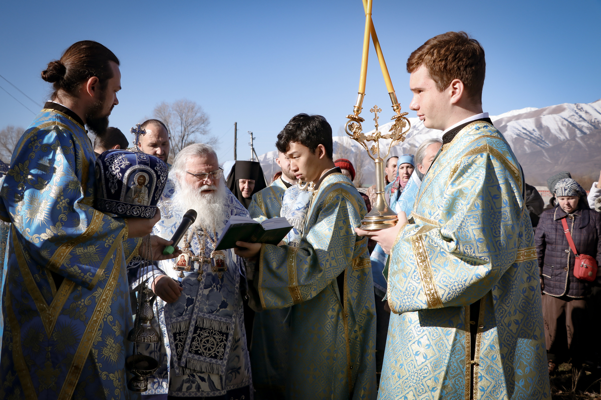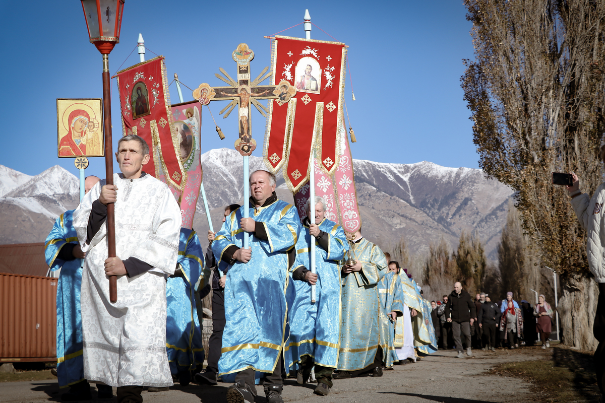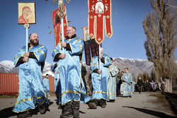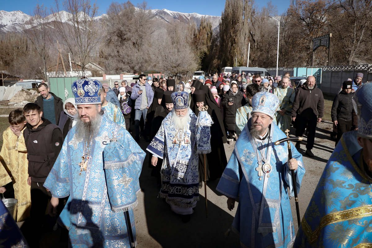 А после литургии все ее участники со списком чудотворной иконы Божией Матери «Тихвинская Слезоточивая» обошли крестным ходом не только территорию детского дома, но и места, которые в будущем, даст Бог заявят о себе как о культурно-историческом центре: Это Аллея Матерей - центральным символом которой послужит памятник Токтогон Абдыбасаровой, принявшей и воспитавшей детей блокадного Ленинграда, это и музей 1500-летней истории христианства в Средней Азии. Это и возрожденная монашеская жизнь старинной обители. Во время крестного хода был освящен памятник и источник родниковой воды.