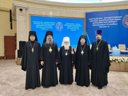 Викарий Астанайской епархии, епископ Каскеленский Геннадий, передал приветственный адрес от митрополита Астанайского и Казахстанского Александра;