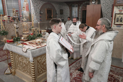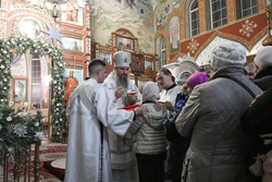 Его Преосвященство подчеркнул, что Рождество Господа в пещере, не было вызвано необходимостью. Господь мог выбрать для Своего пришествия в мир самое лучшее жилище. Но Его выбор был милостью по отношению к человечеству. «Господь воплотился на земле, для того, чтобы иметь возможность пострадать и поскорбеть ради человека. Он выбрал тесный путь. Бог – всеблажен, но сострадая роду человеческому, Господь приходит в мир, не только для того, чтобы наставить людей, но и для того, чтобы взять грех человечества на Себя».