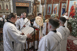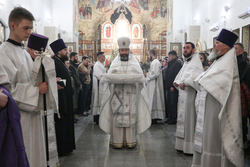 По запричастном стихе иерей Георгий Дворовой огласил послание Святейшего Патриарха Московского и всея Руси Кирилла.