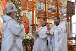 Поздравив владыку Савватия, духовенство и мирян со всеми праздниками, митрополит Викентий произнес слово архипастырского наставления.