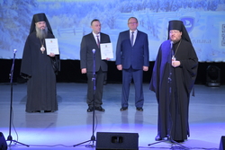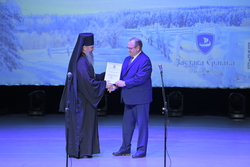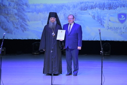 В свою очередь награду, памятный символ «Застава Ермака» в знак благодарности поддержки мероприятия главе Тарского района Евгению Лысакову вручил епископ Тарский и Тюкалинский Викентий.
