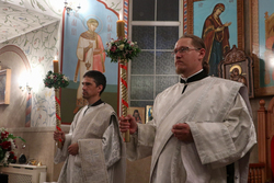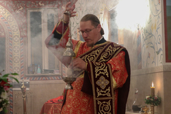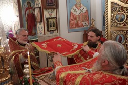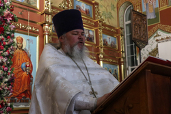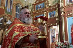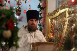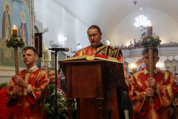 После заамвонной молитвы ключарь Свято-Воскресенского кафедрального собора, иерей Илия Меляков освятил артос.