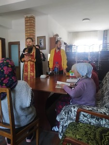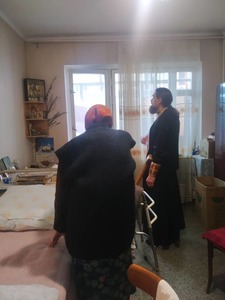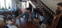 Добровольцы привезли музыкальное поздравление и пасхальные угощения, собранные на Пасху по время освящения приношений. Этому предшествовало духовное поздравление с молитвой и пасхальными песнопениями. Посещение прихожан, которые по состоянию здоровья не могли прийти в храм на Пасху, сопровождалось освящением приготовленных ими праздничных куличей и яиц.