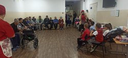 Дети своими руками изготовили поздравительные открытки для именинников и с трепетом вручали подарки с носочками и душистым туалетным мылом, а подопечные принимали их с благодарностью, иногда, со слезами на глазах. На обед, к чаю, для 230 подопечных было предложено пирожное «Картошка», сделанное руками членов Общины «Утешение». Праздник удался на славу!