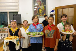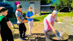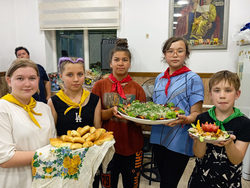 Вечером состоялась презентация блюд, на которую были приглашены родители. После представления началась дегустация. Все участники по достоинству оценили труд детей и поблагодарили за вкусный ужин. Пирожки были съедены на вечернем костре.