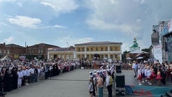 Вскоре после литии состоялся Крестный ход с Тихвинской иконой Божией Матери от часовни, построенной в честь 400-летия города, до Спасского храма, где митрополит Дионисий совершил Всенощное бдение.