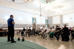 25 августа, в конференц-зале духовно-просветительского центра Свято-Воскресенского кафедрального собора состоялась встреча с чемпионом мира по гиревому спорту иеромонахом Серафимом (Шанинным). Отец Серафим является клириком Мужского монастыря во имя Новомучеников и исповедников Российских г. Алапаевск (Россия). Не так давно отец Серафим завоевал титул чемпиона мира по гиревому спорту в любительском разряде.
