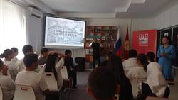 Выставку организовала российский культуролог, историк и просветитель Анна Эспарса. Все материалы экспозиции переведены на кыргызский язык Элеонорой Турдубековой. Старшеклассники были впечатлены насыщенными историческими фактами, проявили хорошие знания в области Русской литературы и активно поучаствовали в дискуссии после лекции.