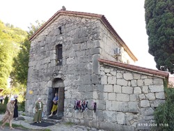 В одной из поездок пошли пешком на восхождение на Иверскую (Анакопийскую) гору, к древней столице Абхазского царства – Анакопии. По крутым склонам с молитвами поднялись на вершину горы, где нам открылась старинная часовня, в которой находится список с иконы Божией Матери «Иверская». Почитали акафист и испили святой воды из колодца на вершине горы. Вниз спускались как на крыльях, по молитвам святой Царицы небесной. За несколько дней посетили много святых мест, поднялись к месту в горах, где отслужил свою последнюю Литургию Иоанн Златоуст. Здесь же находится могила мученика Василиска, его мощи под спудом и храм в честь святого.