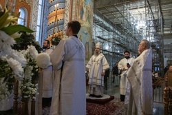 По окончании богослужения духовенство совершило славление. В центр храма была вынесена зажженная свеча, перед иконой праздника пропели тропарь и кондак Рождеству Христов.