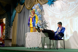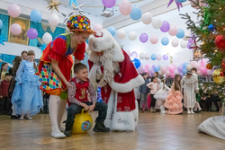 Праздничную атмосферу создали ведущий Александр Сайгин, а также аниматоры – ученики и выпускники Владимирской школы. Они радовали детей веселыми хороводами, песнями, загадками и подвижными играми. Роль Снегурочки в этом году исполнила ученица Владимирской школы Аня Валь, а бессменный Дед Мороз – бессменный Владимир Белкин – зажег зал своей искрометной энергией и остроумием. Завершением праздника для каждого ребенка стал заветный подарок от Доброго волшебника.