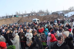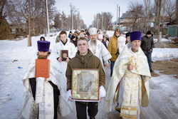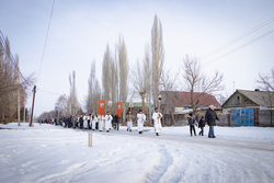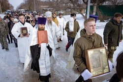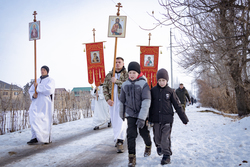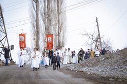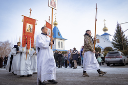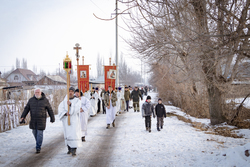 После Божественной литургии, которую совершил протоиерей Александр Мезенцев в храме великомученика Димитрия Солунского, прихожане и гости из окрестных местностей прошли крестным ходом к реке Кара-Балтинка, которую за многолетнюю традицию называют «Киргизским Иорданом».