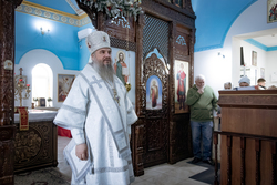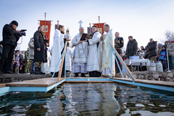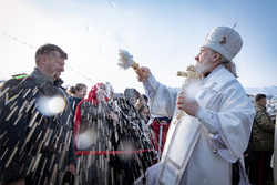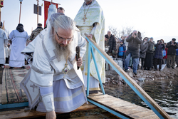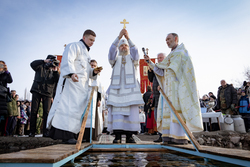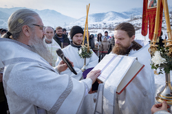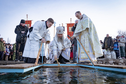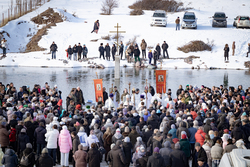 На берегу реки епископ Савватий совершил чин великого водосвятия и обратился к собравшимся с поздравлением, пожелав всем крепкой веры, духовного обновления и Божьей благодати.