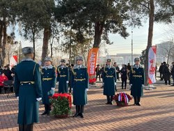 Митинг-реквием начался с минуты молчания и трехкратного оружейного залпа, а также возложения цветов к памятнику. Прозвучали гимны Кыргызской Республики и Российской Федерации, символизируя не только содружество двух стран, но и единство человеческих судеб, связанных общей историей, испытаниями и героизмом.