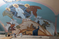 Эскизы для росписи были подготовлены совместно с епископом Савватием. Мастера добавили детали, чтобы композиция стала по-настоящему гармоничной. Работа ведется с использованием высококачественных силикатных красок, которые позволяют стенам «дышать» и сохраняют храм в идеальном состоянии на десятилетия вперед.