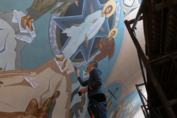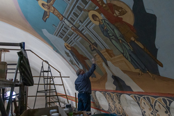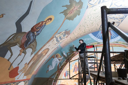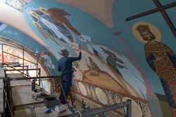 Роспись сводов собора – процесс технически сложный. Команда из шести человек работает на высоте, используя леса, установленные силами прихожан и руководства храма. «Технические трудности иногда кажутся непреодолимыми, но с Божьей помощью и поддержкой епархии мы всегда находим решения», – делится Борис Алексеев. По его словам, сложная геометрия сводов, напоминающая древние христианские базилики, стала не только вызовом, но и источником вдохновения. Воплощение в Кыргызстане такой росписи – уникальный случай, который делает храм не просто местом молитвы, но и художественной жемчужиной региона.