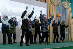 Праздник включал гимн Кыргызской Республики, стихотворения о войне, композицию «Блокаданы балдары», посвященную эвакуированным детям блокадного Ленинграда, а также сценические постановки. Учащиеся старших классов исполнили песню «Тынчтык», а финальной точкой мероприятия стала кыргызскоязычная версия песни «День Победы», во время которой весь зал встал, поддерживая выступающих аплодисментами.