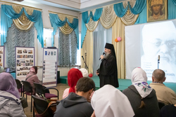 Анна Ивановна рассказала об исследовательской деятельности, о поездке по Кыргызстану, о паломничестве в Иссык-Ату, и поделилась глубоким личным переживанием встречи с историей Свято-Троицкого монастыря. Также она привезла электронную версию книги о святителе Луке. Любой желающий может получить её копию, обратившись в канцелярию епархии.