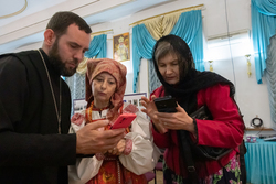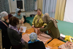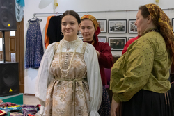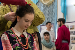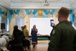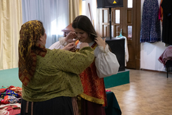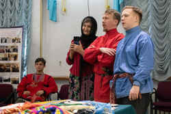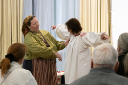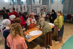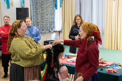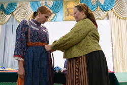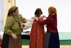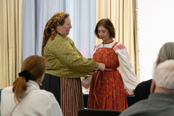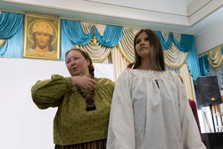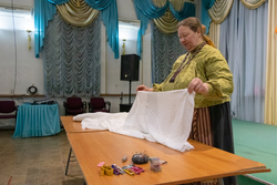 5 апреля в конференц-зале Бишкекской епархии царила удивительная атмосфера. Старинные народные песни, скромные и глубокие интонации, красочные одеяния – всё это стало частью семинара по русскому костюму, проведённому фольклорно-этнографической студией «Сретенье» под руководством Елены Чешегоровой. Гости из Омска приехали не просто рассказать о традициях, но пригласить – испытать их на себе.