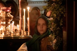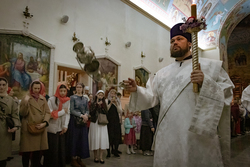 Пасхальное богослужение началось полунощницей. Это особое богослужение. Его основная часть – чтение канона Великой субботы, повествующее о погребении Спасителя. В конце чтения через открытые Царские врата епископ Савватий занес Плащаницу в алтарь.