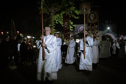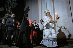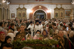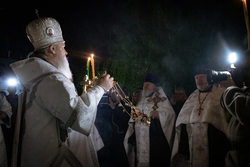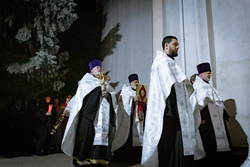 По окончании полунощницы, под пение стихиры «Воскресение Твое, Христе Спасе», вокруг собора был совершен крестный ход.