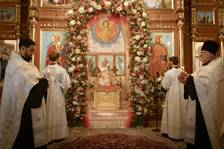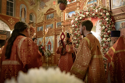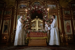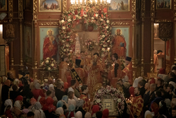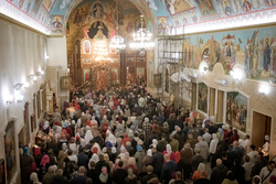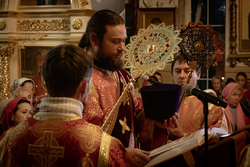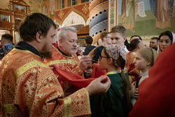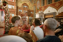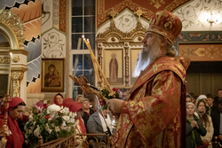 По запричастном стихе было оглашено Пасхальное послание Святейшего Патриарха Кирилла архипастырям, пастырям, монашествующим и всем верным чадам Русской Православной Церкви.