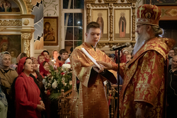 За Пасхальной заутреней Его Преосвященство прочитал Слово огласительное святителя Иоанна Златоуста на Святую Пасху.